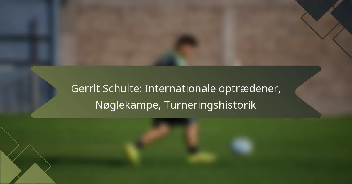 Gerrit Schultes internationale karriere inkluderer flere bemærkelsesværdige præstationer. Han huskes for sin målfarlighed, der bidrog betydeligt til holdets samlede præstation.